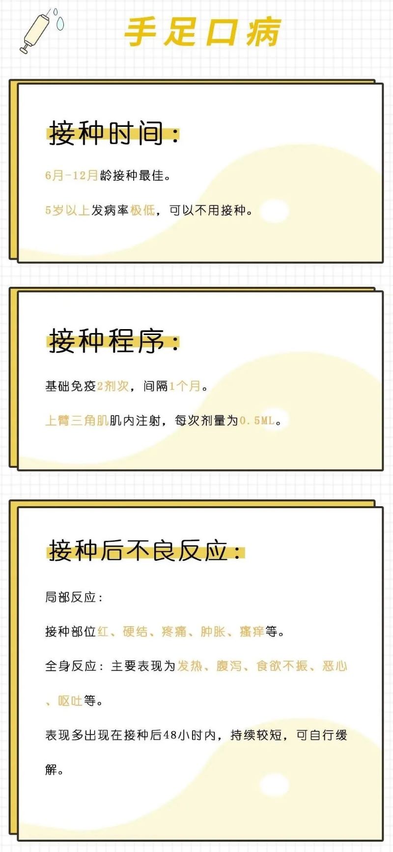手足口病疫苗接种提示: