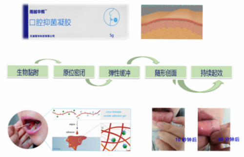 生物黏附:在口腔内侧10秒内迅速形成弹性的覆盖体;