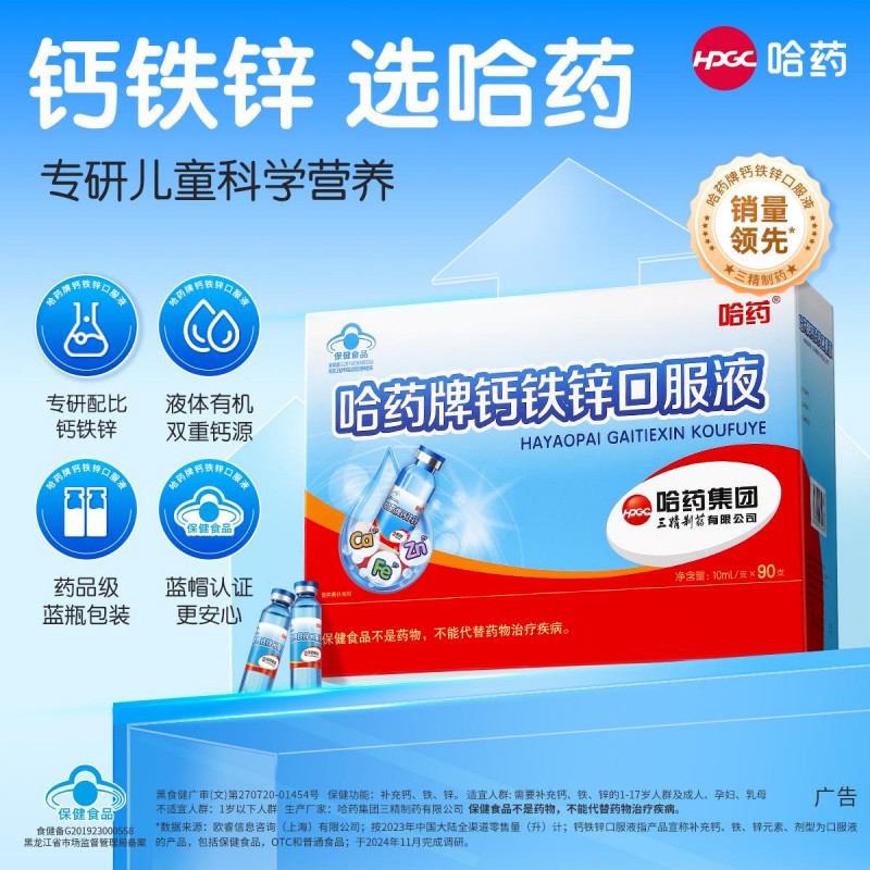 需要强调的是,此类结晶并非变质、污染或添加物所致,而是产品中真实存在的钙、铁、锌等营养成分在低温下的物理聚集。哈药钙铁锌口服液坚持纯净配方,实现0添加塑化剂、0防腐剂、0色素、0重金属、0增稠剂,从源头保障儿童饮用安全。析出物成分与原液一致,无任何有害副产物生成。