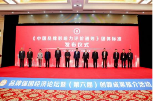 《中国品牌影响力评价通则》团体标准在4月22日品牌强国经济论坛活动现场正式发布。其中第十二届全国政协副主席马培华,中国关心下一代工作委员会常务副主任、中共中央宣传部原副部长、中国文联原党组书记胡振民,第一届国务院国有重点大型企业监事会主席、对外经济贸易大学中国国际品牌战略研究中心名誉主任谢钟毓,商务部原副部长、中国商业联合会原会长张志刚,原国家质检总局总工程师、中国质量万里行促进会会长、北京大学质量与法制研究所所长刘兆彬,经济学家宋承敏,全国商报联合会会长胡斌,对外经济贸易大学中国国际品牌战略研究中心主任储祥银,对外经济贸易大学中国国际品牌战略研究中心执行主任冷柏军,全国商报联合会秘书长姜尚源,中国贸促会商业行业委员会秘书长姚歆,国家发改委主管中宏网品牌项目发展中心执行主任、全国商报联合会品牌建设推广工作委员会主任、品牌强国自主品牌优选工程执行中国品牌影响力评价通则》团体标准发布仪式。